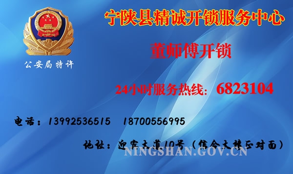 宁陕精诚开锁 联系人:董雨成 电话:13992536515 18700556995