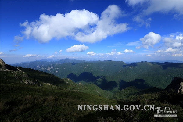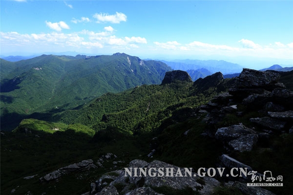 夏日的秦岭到处是群山披绿,万木争荣。草甸如毯,,空气清新,风景宜人。登峰远眺: