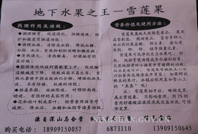 宁陕县雪莲果试种成功 订购电话:18909150057